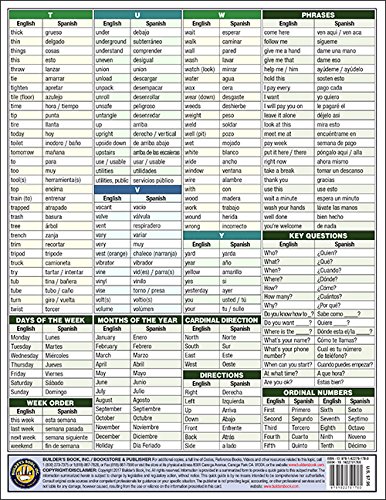 Construction Job Site English Spanish Translator Quick Card English And Spanish Edition Builders Book Inc 9781622701780 Amazon Com Books